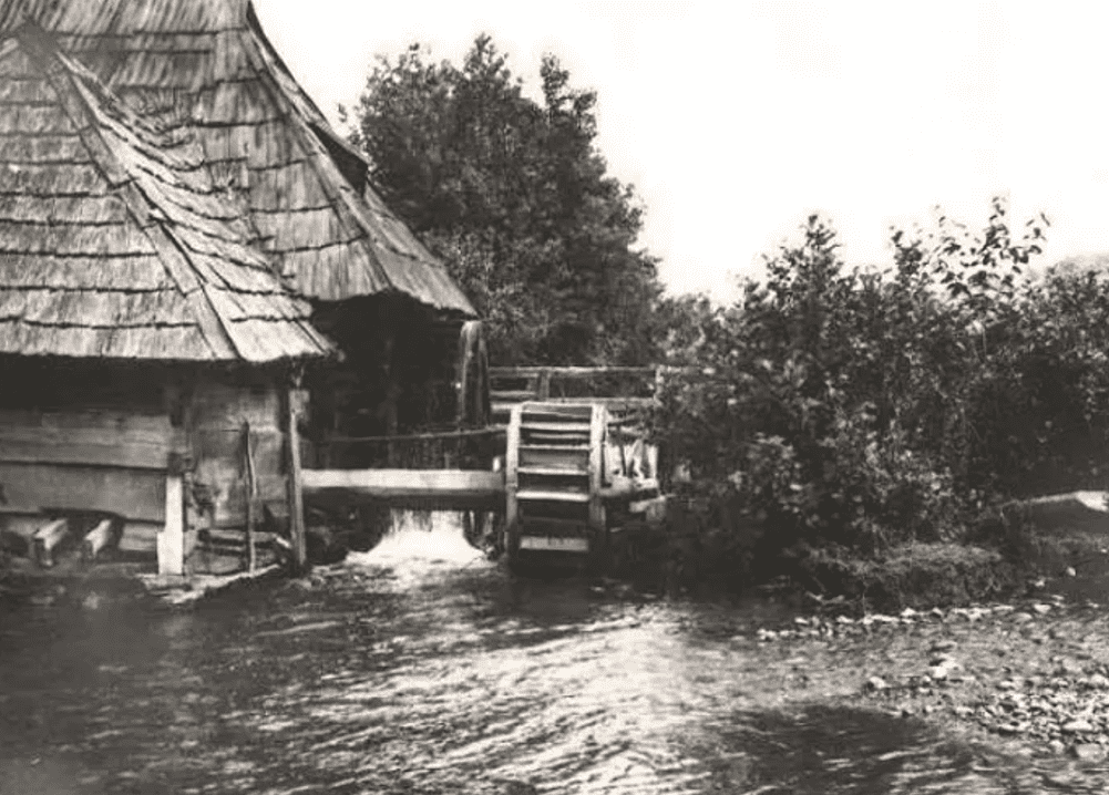Мельницы размещали на реке или потоке, где можно было возвести дамбу. Колесо закрепляли на горизонтально установленном валу. Когда оно вращалось, то вращался и вал, приводивший в движение механизм помола зерна. В горных или подгорных районах мельницы строили на некотором расстоянии от русла реки, чтобы их не уничтожило наводнение, а к водяному колесу воду из реки подводили по специальному каналу, который назывался млынивкой.