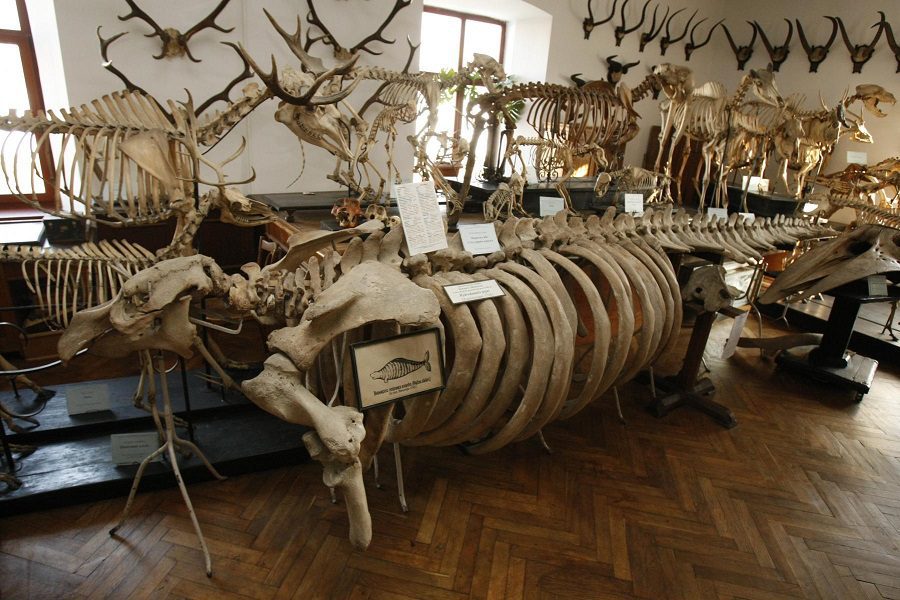 В 1904 году коллекции обогатились одним чрезвычайно ценным экспонатом – скелетом морской коровы Стеллера, которая обитала в холодных водах Тихого океана, была 8–10 метров в длину и весила до 3,5 тонн. Корову истребили люди в 1768 году для получения мяса. Скелет музея передали жители острова Беринга за то, что Дыбовский их бесплатно лечил. В то время во всех музеях мира насчитывалось только 27 скелетов этого морского жителя.