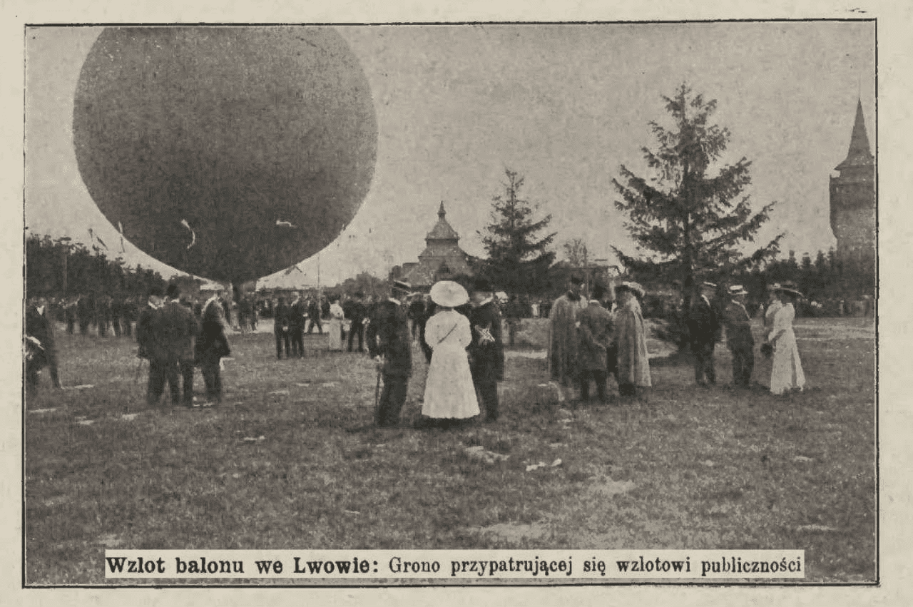 Політ повітряної кулі вирішили реалізовувати в саду Бєльських (нині – вулиця Коперника). Перший політ був без пасажирів. Але охочих подивитись на цю подію було багато.